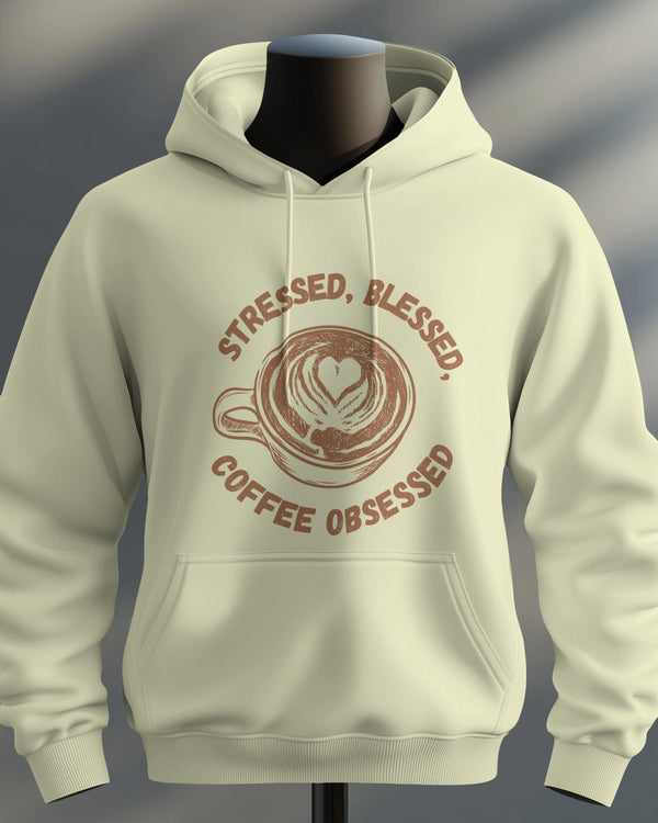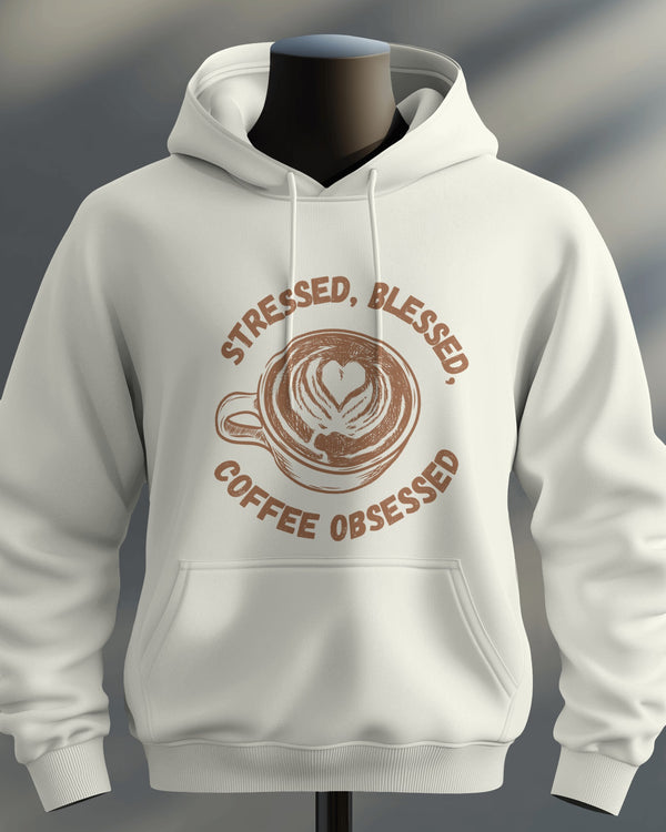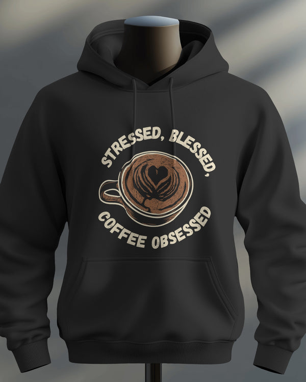 Stressed, blessed, and coffee obsessed unisexual hoodie